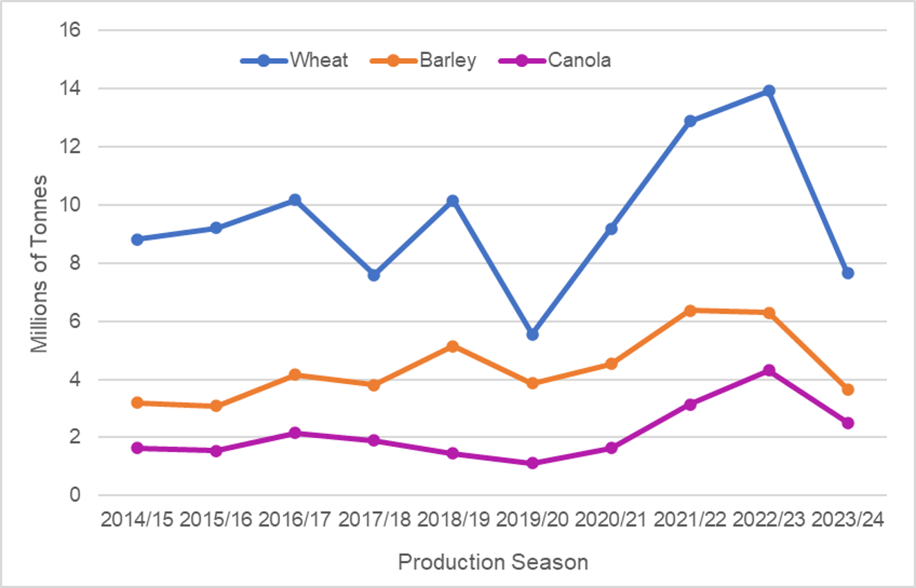 Wheat, barley, and canola production in Western Australia