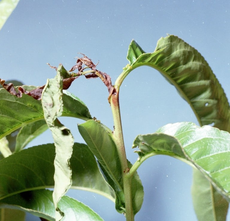 Peach tree with characteristic shoot damage Photo: Clemson University - USDA Cooperative Extension Slide Series, Bugwood.org |
